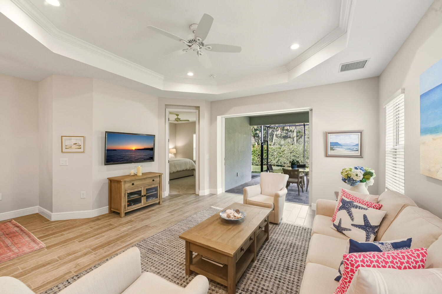 Situated on a peaceful preserve, this 2 bedroom plus den SINGLE-LEVEL ‘Smart Home’ offers over 1,600+sf of truly functional living space. BUILT IN 2019 and located in the X-ZONE, this home benefits from LOWER INSURANCE COSTS! The gourmet kitchen features a large island, spacious pantry and NATURAL GAS, making it a perfect space for entertaining or everyday living! Tile flooring runs throughout, and the living area is enhanced by a coffered ceiling. The primary suite includes a luxurious bathroom and spacious closets. Additional updates include the EXTENDED lanai, 8′ DOORS THROUGHOUT, a large laundry room with a utility sink. Marquesa Isles of Naples is a centrally located, gated and PET FRIENDLY community that is MINUTES TO DOWNTOWN NAPLES with fabulous shopping, restaurants and beaches close-by! Neighborhood amenities include a beautiful clubhouse, pool and spa, fire pit and a dog park! LOW HOA FEES includes Hotwire fiber optic TV and internet plus lawn care and irrigation. NO CDD.