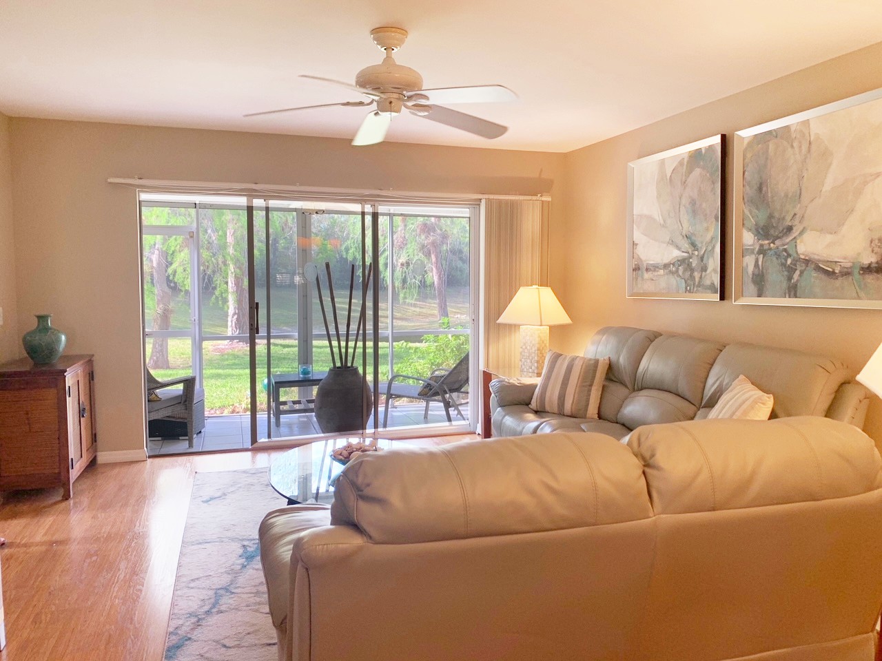 Welcome Home to your private sanctuary…Set amongst the beautiful flora and fauna of Sherwood, this maintenance free, first floor, end unit has everything you are looking for, at a price that cannot be beat!!! Sit on the lanai and view the picturesque lake and fountains, amazing shade trees, and wonderful birds…it is SO peaceful; you’ll feel like you are in another world. This pet friendly home features a detached 1-car garage, 3 bedrooms, 2 full baths, an eat-in kitchen with granite, pull-out drawers, an oversized pass-thru bar, and 2019 appliances! WOW! Check out the spacious master suite with lots of natural light, a walk-in closet, and a new shower door and vanity! Solid surface flooring, electric shutter on the lanai, and so much more! The community has low fees and includes over 20 acres of preserve, 12+ acres of pristine lakes, 2 heated swimming pools, tennis, a clubhouse with a gathering room with kitchen, an exercise room and sidewalks! This property checks off everything on your list…make an offer soon because it won’t last long!
