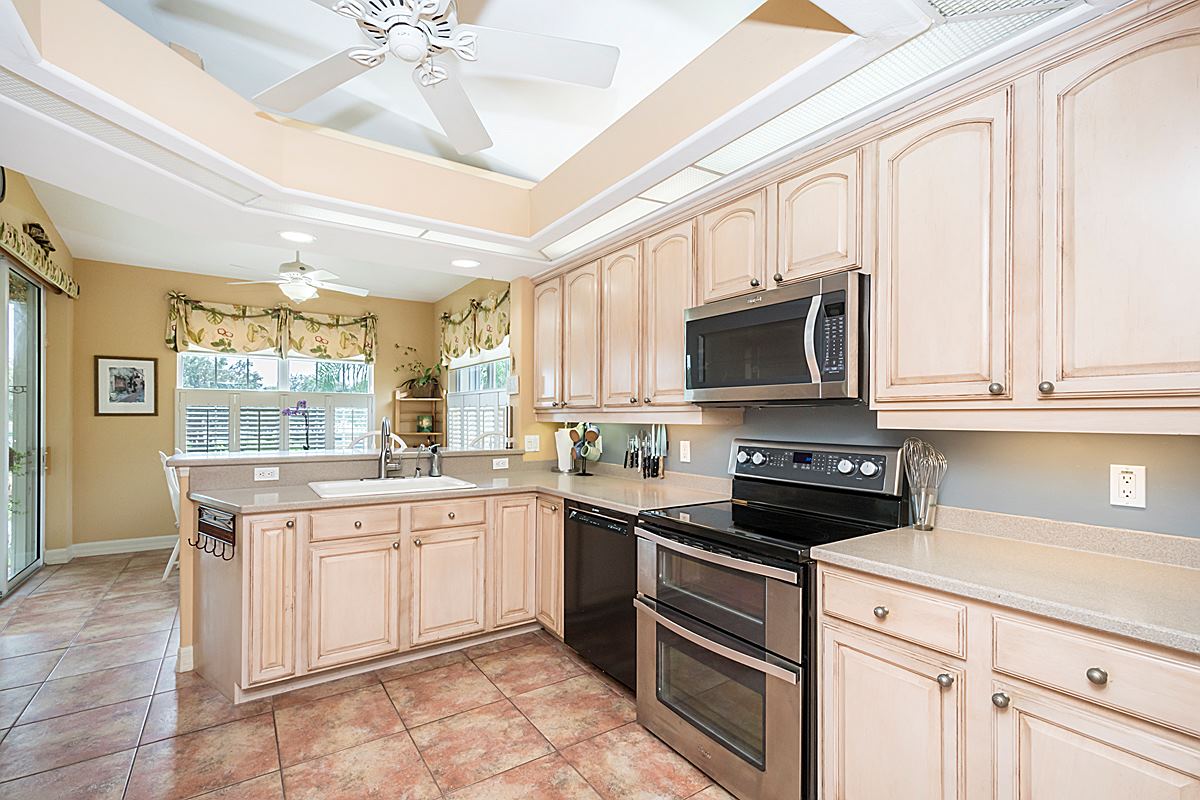 Pebblebrooke LakesSpacious top floor end unit boasts 2 master suites plus another guest room with bath and walk-in closet. Wonderful lanai & breakfast room overlooking The Gardens. Two huge pantries, den is presently being used as a large dining room, cozy fireplace corner, a perfect reading nook… Soaring ceilings, lots of light, high-end finishes… Come see why this is the best coach home value in North Naples!